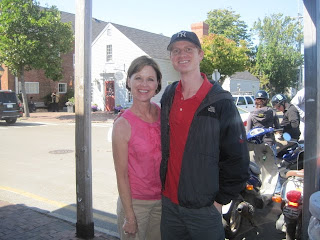Well, hey Robert!! Here we have the first pic of the trip. We are in Boston, walking down a flight of stairs to go out onto the tarmac and get on the plane to Nantucket. Please notice Bob's hat. As most of you know, The Yankees and The Red Sox have a HUGE rivalry, one as big or bigger than OU/TX. Did I know this until a couple months ago? No. Robert will forever be teaching me about sports. Anyway, he did get a comment about his hat in the airport, only one- which is surprising. The lady that checked our i.d.'s at the security counter said something like, "you can't pass with that hat on." She did say it with a smile. I love a friendly sports smack talk. He did get a shout out from a New Yorker that we walked by in Nantucket. He said, "Go Yanks!" And I concur, Go Yanks.